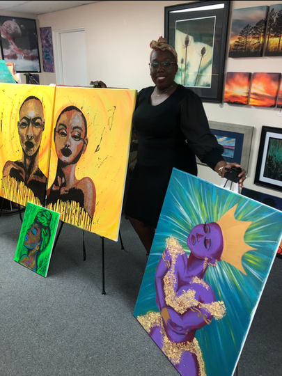 "I have always been gifted with the ability to create art. As a lover of art, I love how it invokes thought and emotion. I find that every time I begin a new piece, its as though I capture what words fail to describe on canvas. What is wonderful about that is the fact that it almost advocates for those who connect with it, leaving them with a feeling of validation or curiosity to explore deeper thought. I do believe that is the purpose and importance of art. Creating art brings me peace and a feeling of purpose and I am overjoyed to share my God given talent with the world."